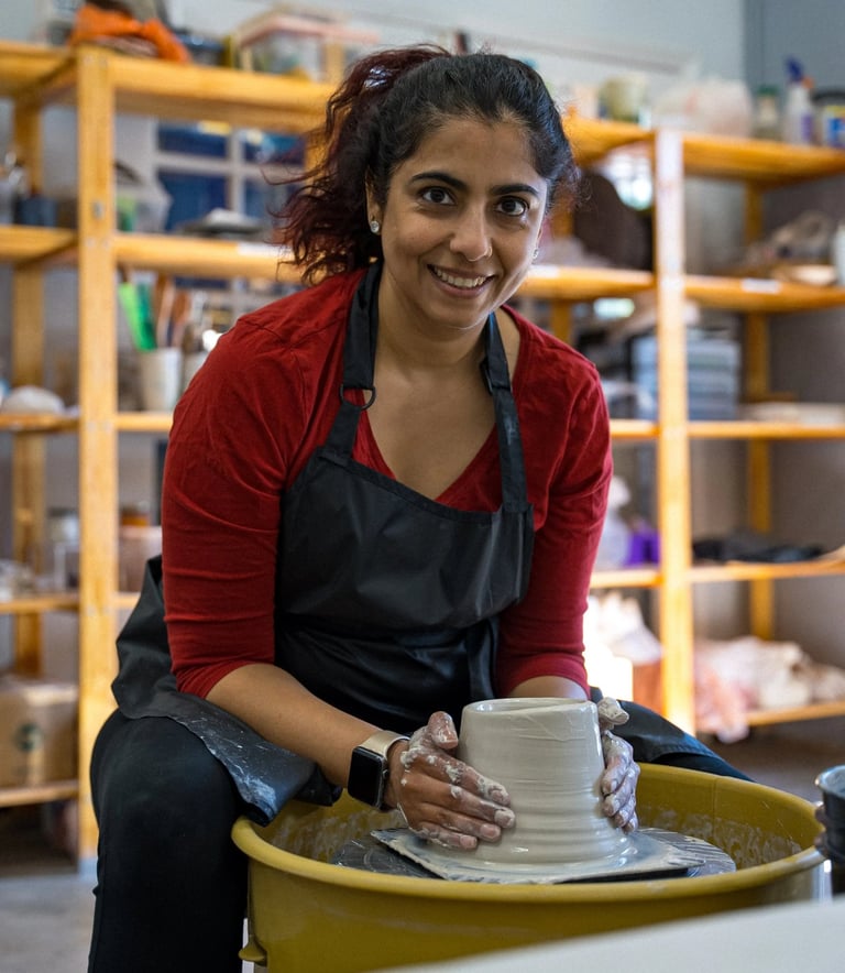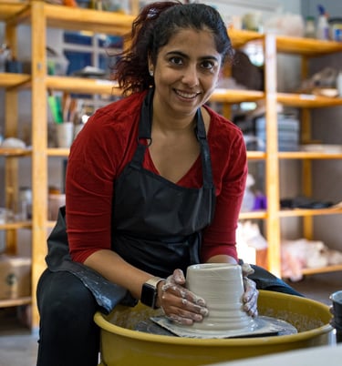 "I got my hands dirty in my first ceramics class. Well... let’s be honest, it was much more. I had clay all over my clothes, shoes, and even some in my hair. I was a mess. I was hooked. Clay is challenging and predictably unpredictable. But taking clay (literally rocks and dust) and turning it into functional art feels like pure magic."