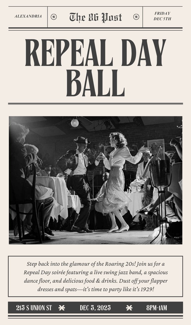 Don your finest flapper dresses and sharpest pinstripe suits. We're turning back the clock to celebrate the end of Prohibition with a Roaring 20s soirée worthy of the occasion.