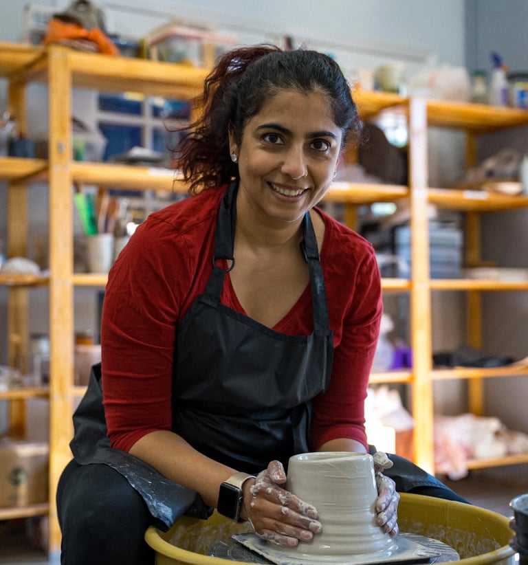 "I got my hands dirty in my first ceramics class. Well... let’s be honest, it was much more. I had clay all over my clothes, shoes, and even some in my hair. I was a mess. I was hooked. Clay is challenging and predictably unpredictable. But taking clay (literally rocks and dust) and turning it into functional art feels like pure magic."